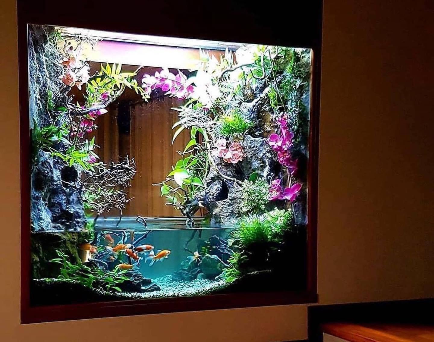Рыбки в аквариуме будут прекрасным решением. Но если вы часто путешествуете, ваши питомцы будут оставаться одни и гибнуть. В этом случае куда разумнее выбрать панель с пузырьками или декоративный водопад. Если вы чаще отдыхаете дома и редко путешествуете, а места в комнате достаточно, можно приобрести даже большой лобстерник или круглый аквариум.
